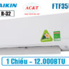 Điều hòa Daikin FTF35UV1V 1 chiều 12000BTU gas R32 dòng thông dụng giá rẻ sản xuất nhập khẩu chính hãng Thái Lan. Daikin FTF35UV1V là một trong những model mới nhất được hãng Daikin