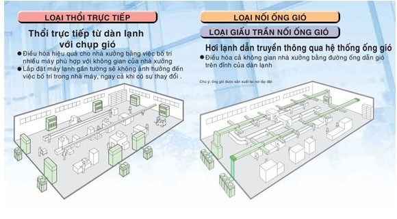 2.1. Hệ thống máy lạnh nhà xưởng loại thổi trực tiếp (đặt sàn)